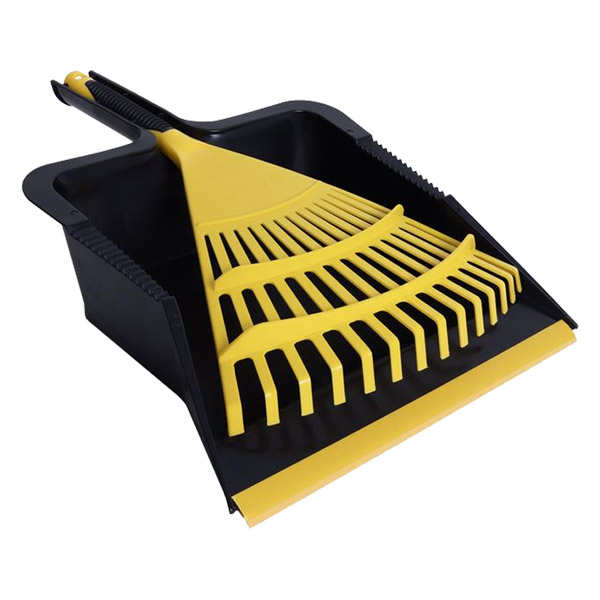 - The Bulldozer Dustpan and large hand rake designed for clearing up heavy garden debris. The heavy duty pan is ideal for bulky, heavy garden debris. The soft grip handle provides comfort and a firm grip while sweeping