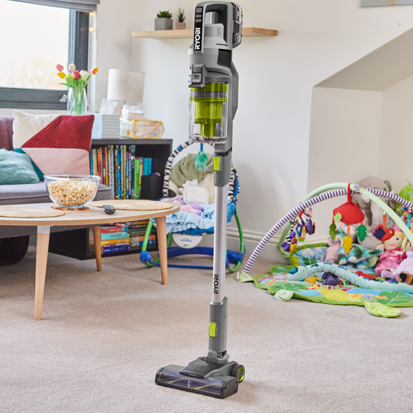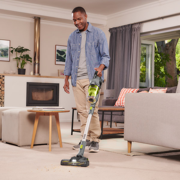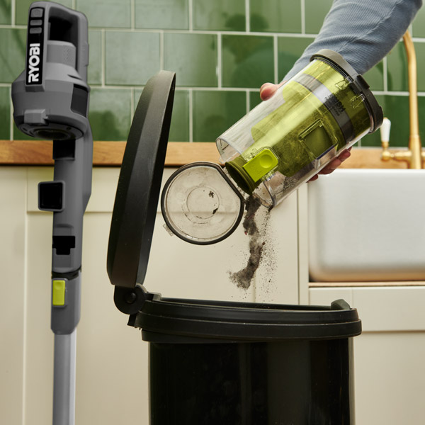 This stick vacuum from Ryobi delivers powerful suction and has an easy-to-use design that makes cleaning hard floors, carpet and upholstery effortless. Utilising the power of the ONE+™ systems’ interchangeable batteries, this stick vac delivers cordless cleaning without the inconvenience of a typical clunky, hard-to-manoeuvre vacuum. Featuring new dual-cyclonic separation technology which delivers faster and longer-lasting airflow, a self-standing feature for easy storage, and a sizeable, fully detachable 600ml dust bin that makes emptying simple and hygienic. The pivoting agile floor head combined with LED front lights is especially useful when navigating all those tricky, hard-to-reach places and illuminating dirt you just can't see. Plus, you’ll no longer have to deal with the noisy, disruptive sound of a regular corded vacuum as this cordless vacuum cleaner is far quieter. With independent brush bar controls and boost mode, you’ll enjoy superior control over your cordless cleaning and easily switch from hard floors to thick carpets.