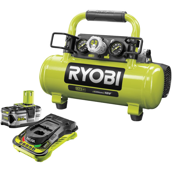 This kit contains the R18AC ONE+ Air Compressor, a 5.0Ah battery and a fast charger.