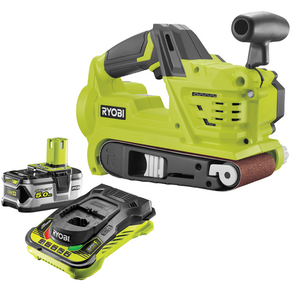 This kit contains the R18BS ONE+ Belt Sander, a 5.0Ah battery and a fast charger.