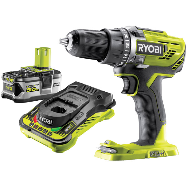 This kit contains the R18DD3 ONE+ Drill Driver, a 5.0Ah battery and a fast charger. Features: