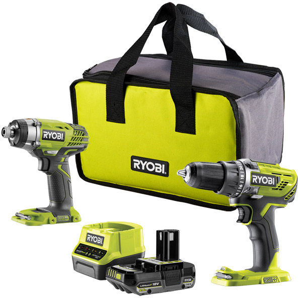 This kit contains the R18DD3 ONE+ Drill Driver, the R18ID3 ONE+ Impact Driver, a 2.5Ah battery, a charger and a tool bag.