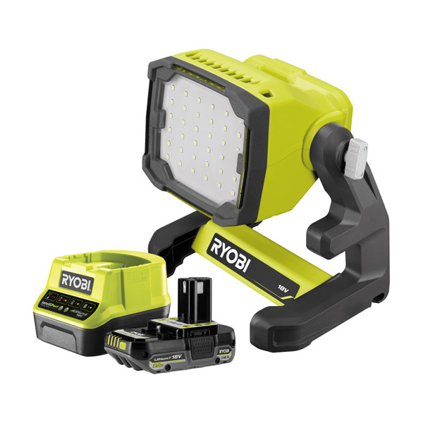 This kit contains the RLFD18 ONE+ Flood Light, a 2.0Ah battery and a charger. Features: