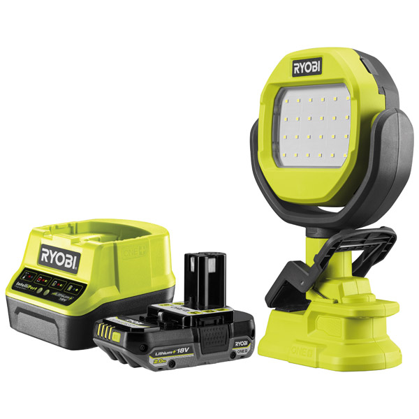 This kit contains the RLCL18 ONE+ LED Clamp Light, a 2.0Ah battery and a charger. Features: