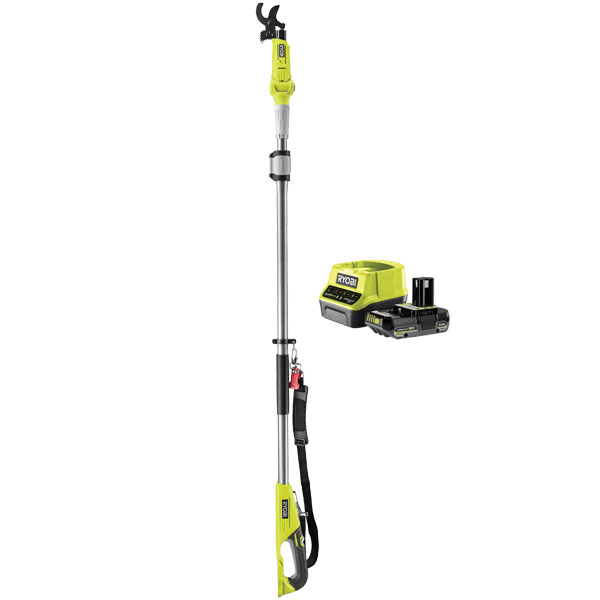 This kit contains the RY18PLA ONE+ 32mm Pole Pruner, a 2.0Ah battery and a compact charger.
