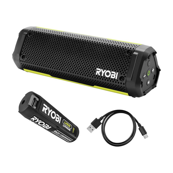 Using the included a 2.0Ah battery, the Ryobi RS4 USB Lithium Speaker can play music uninterrupted for up to 6 hours. Features: